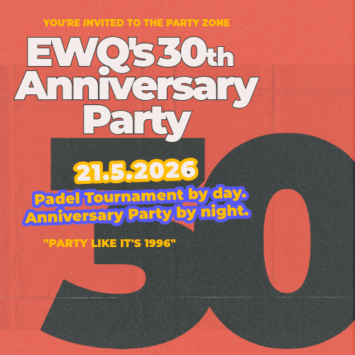 Torsdag den 21. maj fejrer vi EWQ’s 30-års jubilæum i Esbo med to forskellige arrangementer. Dagen indledes med vores anden årlige padelturnering og fortsætter om aftenen med jubilæumsfejring på Tapiola Golf.
