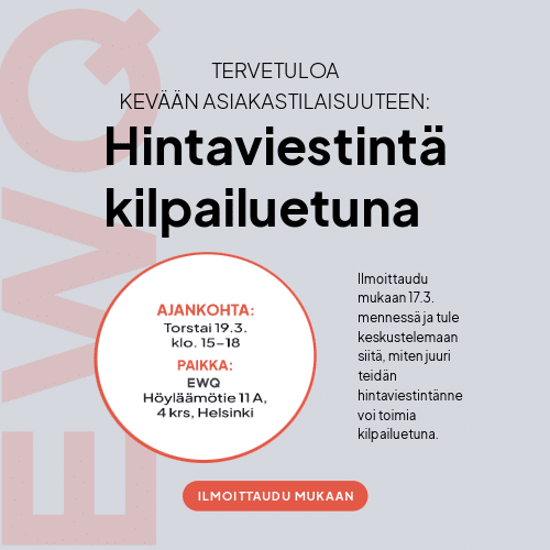 Saat konkreettisia näkemyksiä hintaviestinnän kehittämiseen, mahdollisuuden keskustella suoraan EWQ:n asiantuntijoiden kanssa sekä vaihtaa kokemuksia kollegoiden kanssa rennossa ympäristössä